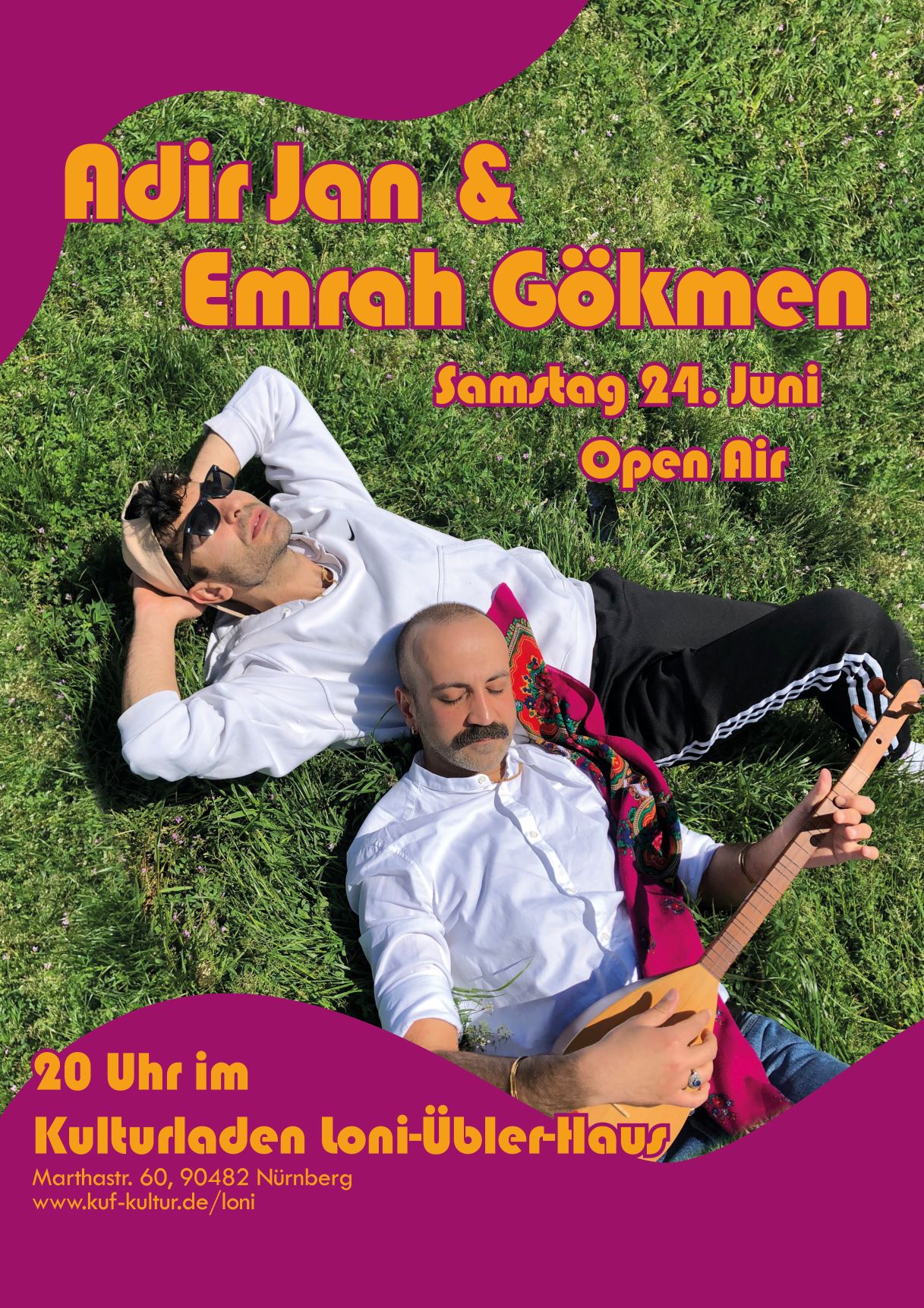 Samstag 24. Juni 2023 Zum Pride Month begrüßt der Kulturladen vom Loni-Übler-Haus am Samstag 24.6. das Berliner Duo Adir Jan & Emrah Gökmen auf ihrer neuen Open Air Bühne. Sie verbinden Tradition mit Neuem: Kurdisch-zazaisch trifft auf weitere Sprachen und neue eigene Stücke aus queer-migrantischer Perspektive. Im Anhang findet ihr den Flyer und hier den...